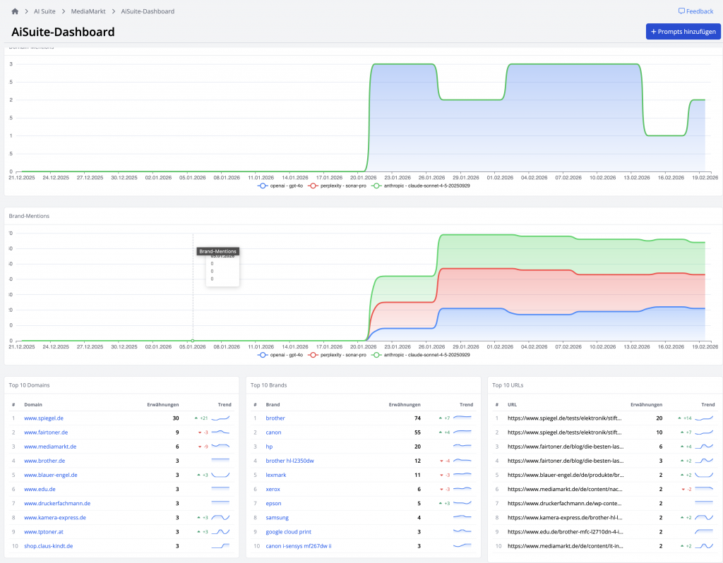 AI Suite – Sichtbarkeit von Domains und Marken in verschiedenen KI-Modellen